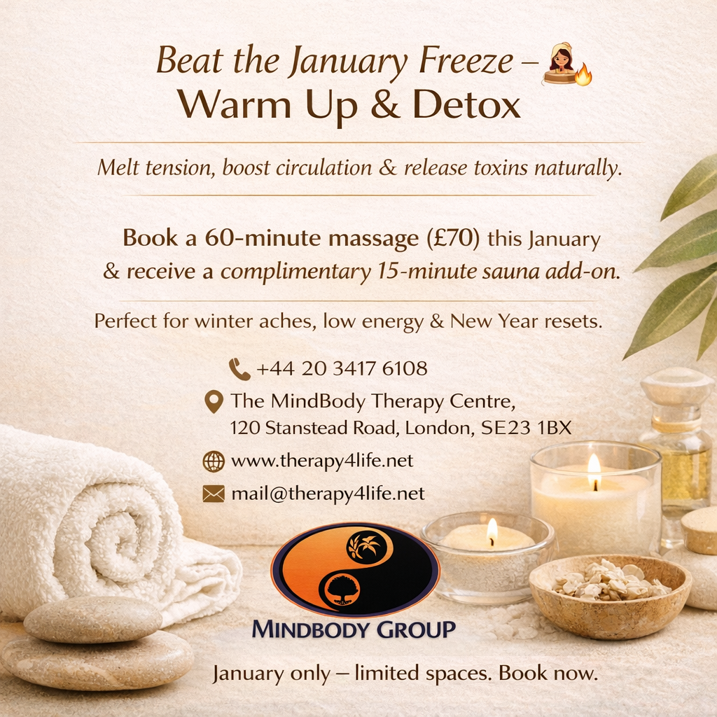 📍 MindBody Therapy Centre, 120 Stanstead Road, SE23 1BX