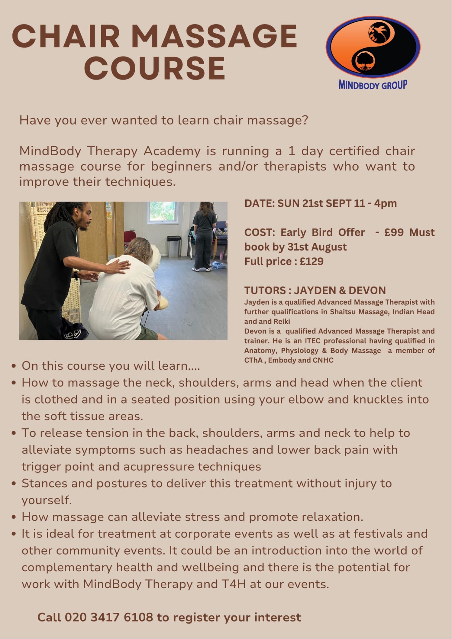 • Early interest list now open for our 2026 Chair Massage Training Course